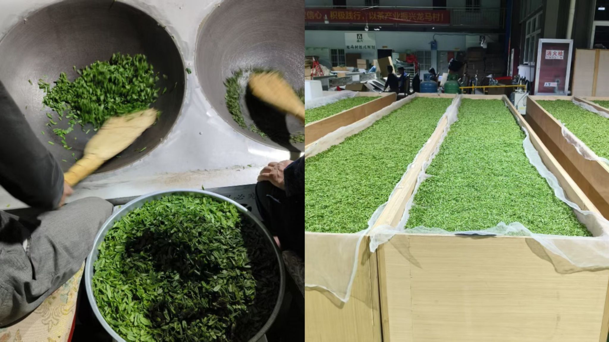 午后,龙马村标准化茶厂内是另一番热闹的景象。茶农们从四面八方赶来,耐心地排着队伍,将上午采摘的鲜叶供给茶厂。茶厂以质论价,优质优价,应收尽收。对茶农来说,采摘的鲜叶及时销售变现,是一份稳稳的幸福。夜间的茶厂灯火通明,周边来的茶农络绎不绝,学校援建的炒茶机械已开足马力加工芽茶和瓜片鲜叶,而炒茶师傅们忙着炒制茶叶鲜叶为今年的销售做好准备。